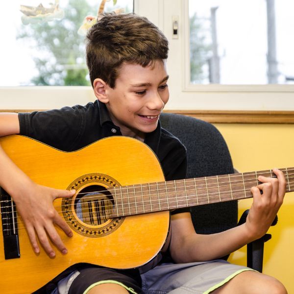 Es spielen Schülerinnen und Schüler der Musikschule aus der Gitarrenklasse von Aliéksey Vianna.